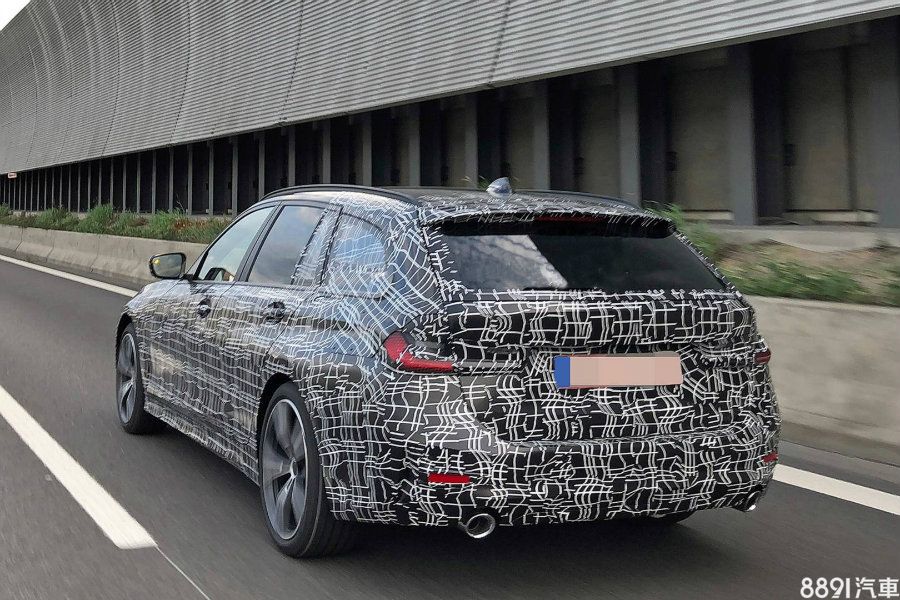 車尾部分,可看出旅行款Touring擁有略為後傾的車頂輪廓線及立體的車身線條,營造出較四門款更動感的視覺效果,而由於新一代3系列軸距表現更加優異,新車在車廂空間與後行李箱容積將有所增長也是不難預見之事。