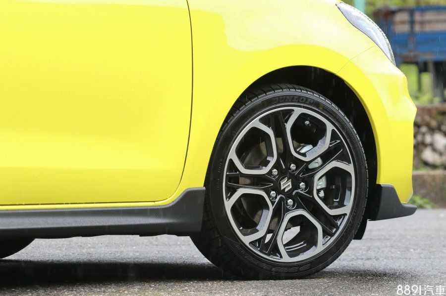 17吋雙色鋁圈造型與一般版本不同,設計上更顯活潑鮮明,搭配195/45R17的登錄普SP Sport Maxx 050跑胎,抓地力對於Swift Sport身手來說相當充足。