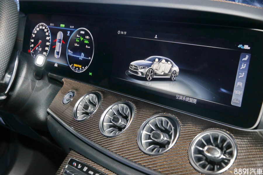車室沿襲家族化格局,CLS 350以大量皮革與木紋飾板強化整體質感,配置新式樣三輻式多功能方向盤,並導入數位雙螢幕系統大幅增加科技感,此外如Keyless、雙區恆溫空調、電動天窗等,均為全車系標配。