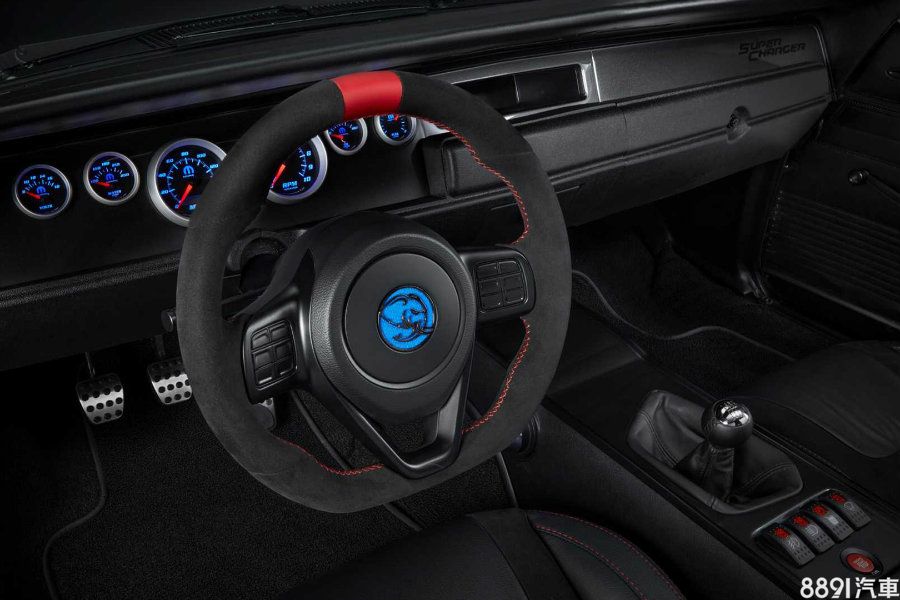 相較於侵略外觀,內裝維持既有佈局,其中三幅式方向盤以麂皮包覆與紅色車縫線來妝點質感,儀表顯示介面也採用全新造型,不僅如此,Mopar改換賽車椅,藉此強調座椅包覆支撐性。