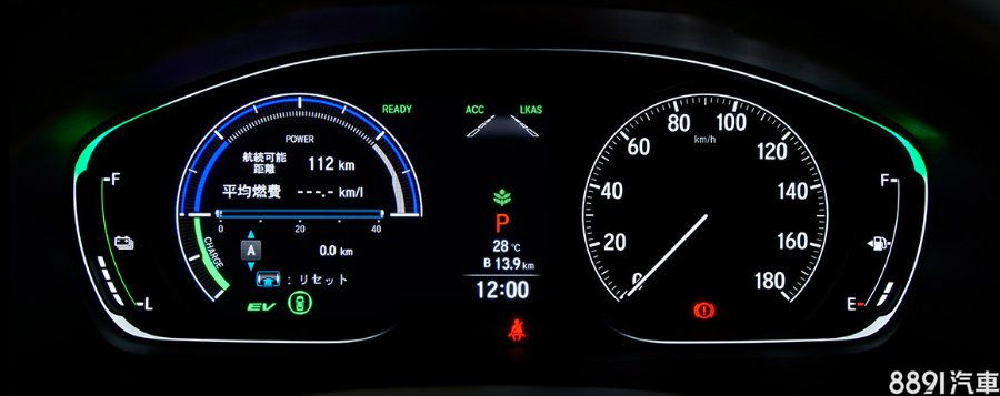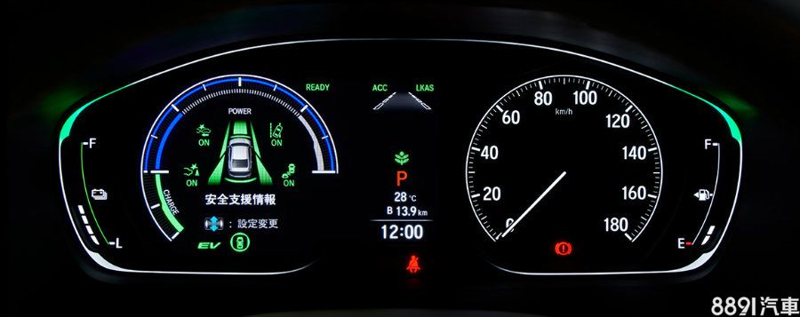 雙環式儀錶中間整合7吋LCD多功能顯示幕,左側可切換顯示如油耗、剩餘可行駛里程、電量、行駛模式、導航、駕駛注意力警示、成員未繫安全帶警示、車況信息等多種資訊。