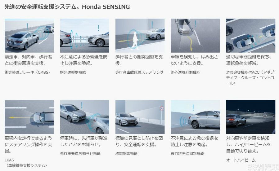 此外,全車系標配整合FCW前方碰撞警示、具行人偵測的CMBS碰撞緩解煞車系統、LDW車道偏移警示、ACC主動式車距維持定速系統、LKAS車道維持輔助、前車駛離警示、自適應遠近光、號誌識別、行人撞擊主動預防、錯誤起步預防、倒車輔助煞停等功能的Honda Sensing。