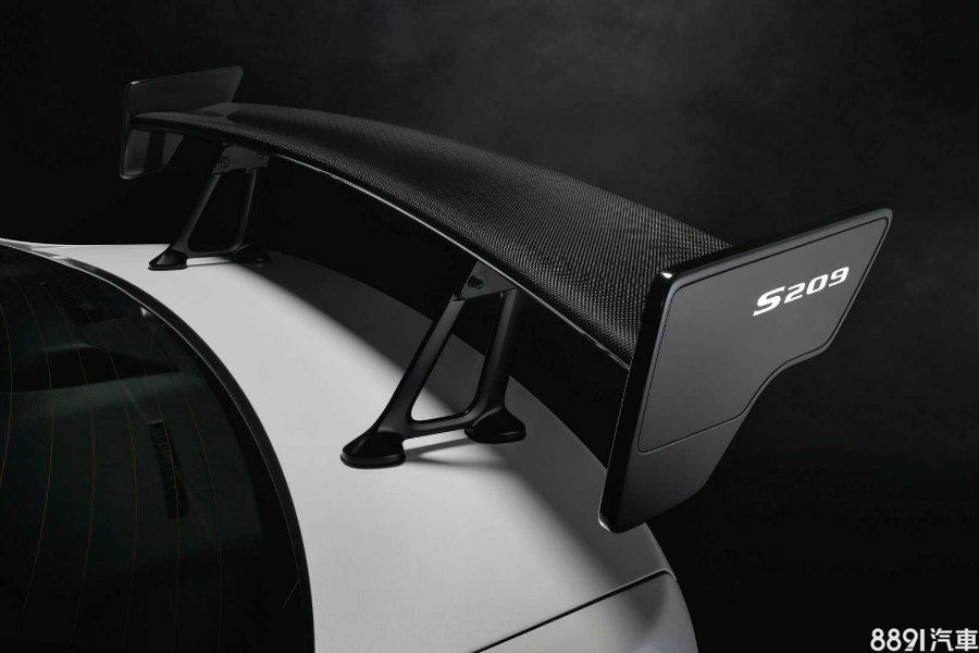 除此之外,S209配置碳纖維車頂、直徑101mm的不銹鋼尾管、其餘包含立體側裙、前後輪拱後方的導流孔道,以及吸睛的碳纖維大型尾翼等空力套件,除了較先前的S208在外觀侵略性的呈現上更勝一籌,原廠表示也能擁有更佳的空力效益。