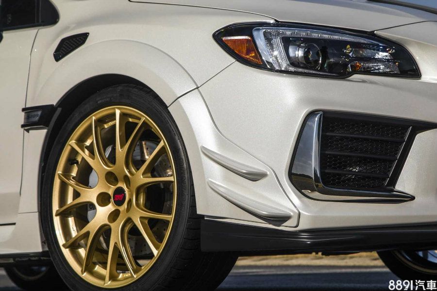 S209同樣以現行WRX STI為基礎打造,不過除了招牌的家族日行燈,原廠為S209換裝了吸睛的寬體套件、前保桿兩側導流鰭、誇張的輪拱、更犀利的前下擾流等,而水箱護罩上的紅色飾條、S209徽飾,為其身份的最好證明。