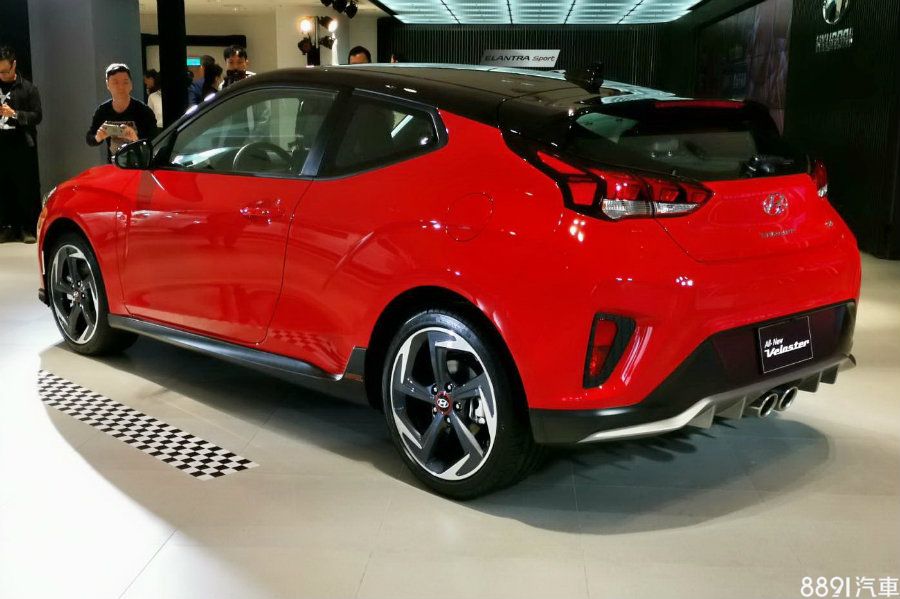 預計五月率先於國內登場的二代Veloster,外觀特色為左側單門、右側雙門設計,以及中置單出尾管,現場展示車施以紅黑雙色塗裝,為Turbo版本。