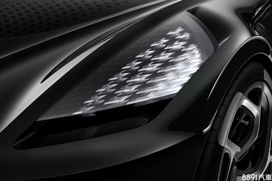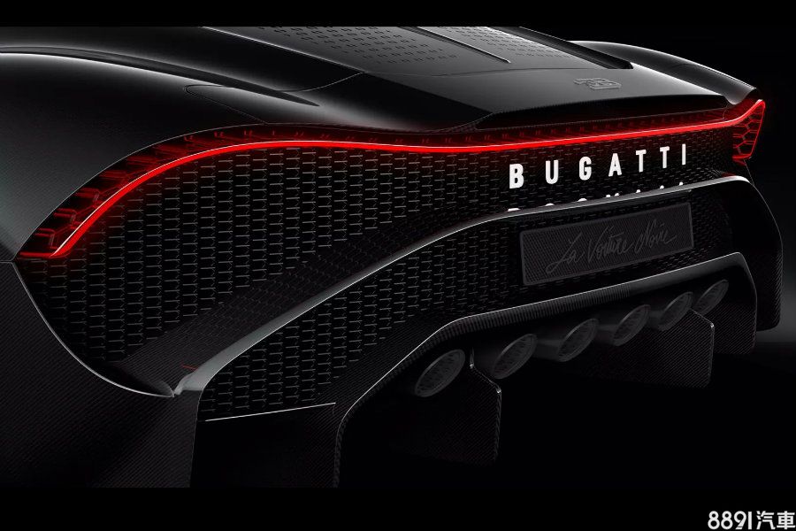 與量產化的Chiron、Divo等車款不同的是,La Voiture Noire擁有獨特的LED頭、尾燈設計,在純黑的外型上更添神秘感與科技元素。車尾廠徽以會發光的「BUGATTI」字樣來凸顯身分,並藉由一字排開的中央六出尾管來展露性能氣息。