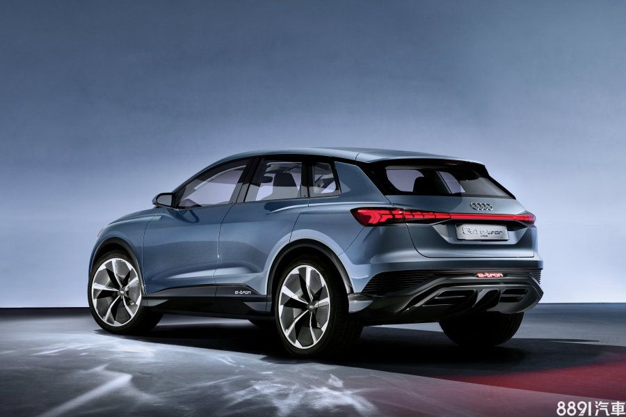Q4 e-tron概念車基於MEB模組化底盤打造,車身尺碼為長4.9米、寬1.9米、高1.61米,軸距則為2770mm。