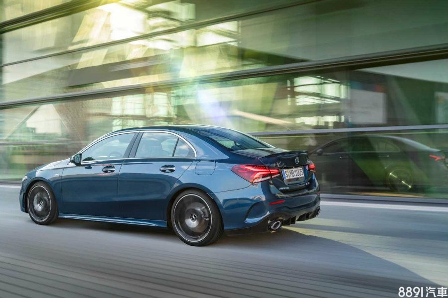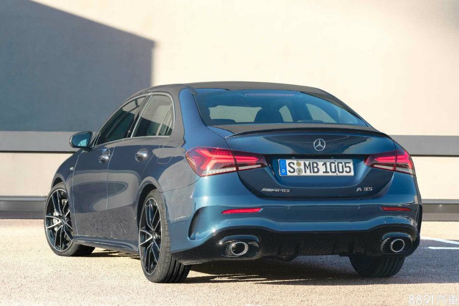A 35車型在新A-Class Sedan既有的外觀基礎下,擁有以粗壯鍍鉻飾條連接中央廠徽的水箱護罩、造型更具侵略性的前後保桿、側裙、前下擾流與後下分流器,並採用圓型兩側雙出尾管,突顯其性能身分。