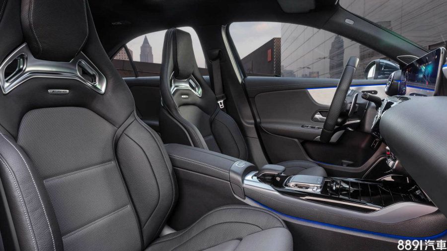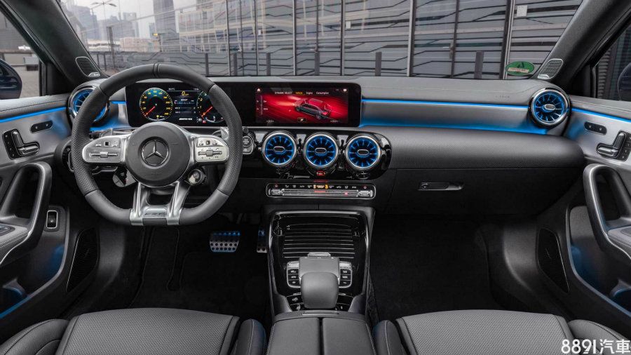 車室加入ARTICO皮革、Dinamica麂皮,以及碳纖維材質,營造不同於一般版本的競技感,配置新式樣AMG方向盤與換檔撥片,前者除了Touch Control旋鈕,還有可即時調整車輛性能的動態選擇按鍵,而擁有三種AMG顯示模式的儀錶、最新的MBUX多媒體系統都沒少,而AMG跑車化座椅自然為標配。