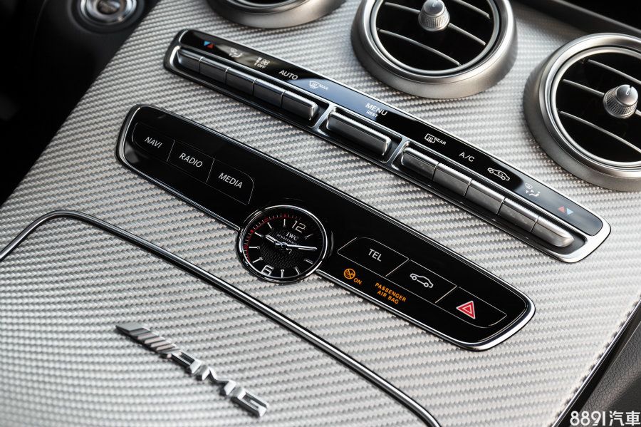 內裝配備也因車型而略有不同,有別於C 63的黑色鋼琴烤漆內飾板,C 63 S則採碳纖維造型款,並於方向盤上標配AMG專屬操控按鈕,且中控台空調介面下方,更嵌有專屬之指針式石英鐘!