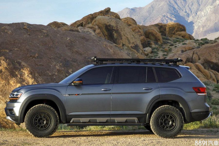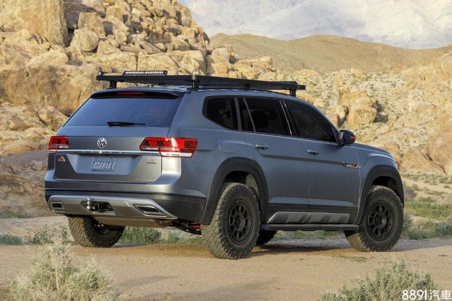 原廠為Atlas Basecamp Concept施以一襲Platinum Gray and Black Uni塗裝,並加入橘色色調,概念車搭載H&R高低可調避震套件,最多能將車身高度提升約38.1mm。