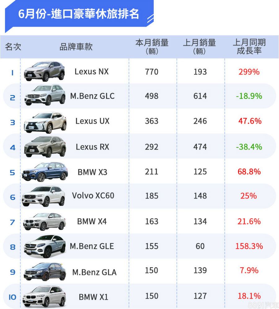 做為Lexus在台的休旅主力,NX在歷經上個月的「一時疲軟」後,成功重整態勢,並於本月一舉以770輛的銷售表現拿下6月豪華休旅冠軍,同時也是市場上銷量僅次於RAV4的進口休旅。有著如此表現,一部分原因在於原廠6月下旬上架的新年式車型,也預期往後幾個月內,NX仍會保有如此銷售熱度!