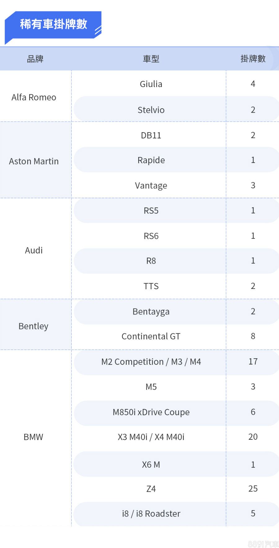 另一方面,BMW前月在休旅市場上,憑藉著X3搶進前五名榜內,前十名榜單也另有X4與X1等休旅陣容。不過,品牌在數個月以來表現持續大起大落,表現上不甚穩定。