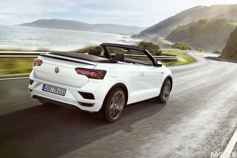 車尾特徵亦與T-ROC相同,包含大量橫向鈑線、車身下緣大面積防刮材質,以及3D LED尾燈等,T-Roc Cabriolet採用的是軟頂敞篷設計,在時速30km/h以下,能在9秒內開篷,新車標配17吋鋁圈,可選配19吋,原廠並為其提供Style和R-Line套件,在外觀、內裝及鋁圈式樣均賦予其不同之風格。