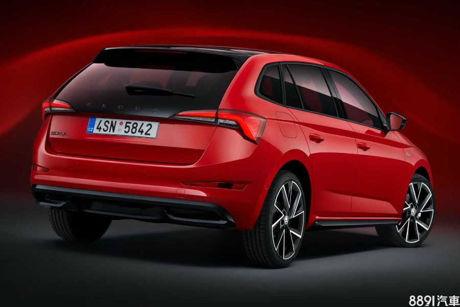 Scala Monte Carlo在車身外觀如水箱護罩、更犀利的前下擾流、側裙、前後保桿、車外後視鏡蓋、車頂擾流尾翼等處,運用黑色色調,其他如車尾Skoda字樣、LED頭燈組、玻璃,也施以燻黑或深色處理,當然彰顯其身分的專屬Monte Carlo徽飾也沒少,此外,搭載的是17吋鋁圈(可選18吋)。