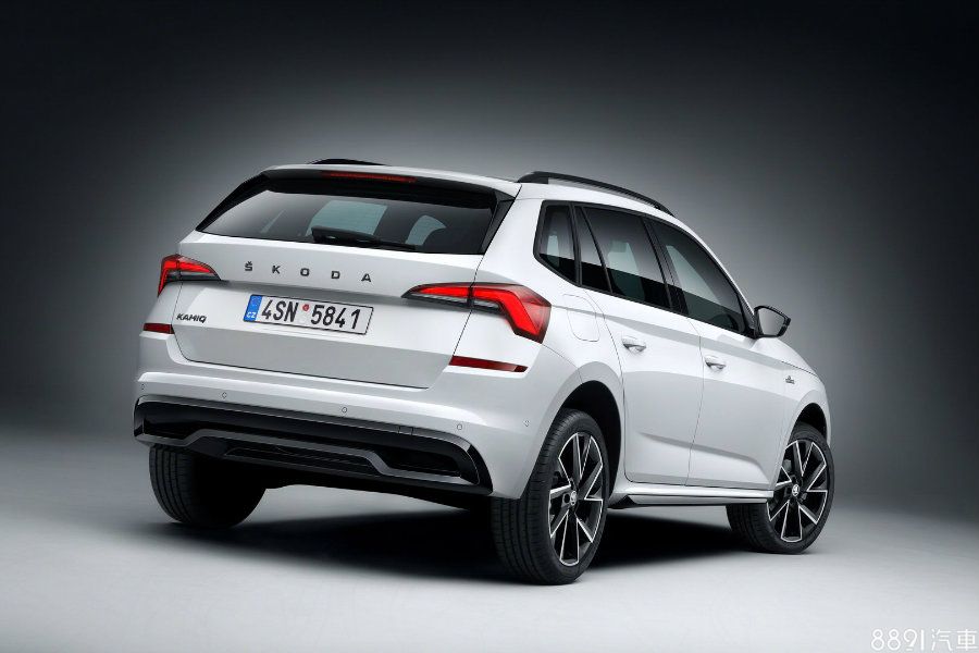 Kamiq Monte Carlo在車身外觀如水箱護罩、更犀利的前下擾流、側裙、前後保桿、車外後視鏡蓋、車頂行李架等處,運用黑色色調,其他如車尾Skoda字樣、LED頭燈組、玻璃,也施以燻黑或深色處理,當然彰顯其身分的專屬Monte Carlo徽飾也沒少,此外,搭載的是17吋鋁圈(可選18吋)。