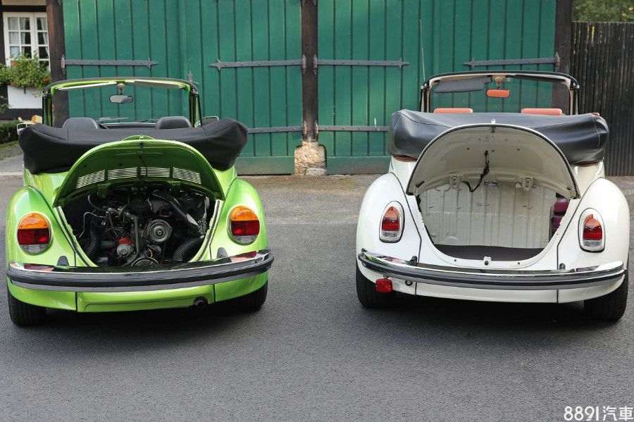 如果車輛的電能耗盡,透過快充系統可以於1小時內擁有150km的續航力,充電孔則是相當特別的設置在右後尾燈的地方,將突出的尾燈掀起就能開始充電,但與老金龜的後置後驅配置不同,e-Bettle的電動馬達設置在前端,採用前驅的配置,因此尾廂開啟還擁有置物空間。