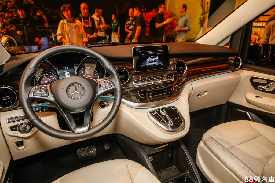 內裝標配7吋多媒體系統,儀表則是採用運動化雙環儀表設計,在,V220 d 及V250 d當中還搭配三色氣氛燈、五段亮度調整的前座環景式內裝照明,呈現更豪華的氛圍,同時可選配全新推出的「豪華中央扶手箱」,中央扶手將升級為內置容量高達 3.2 公升的冰箱,並配置兩具溫控功能置杯架,讓乘客可隨時享有冰涼的飲品。