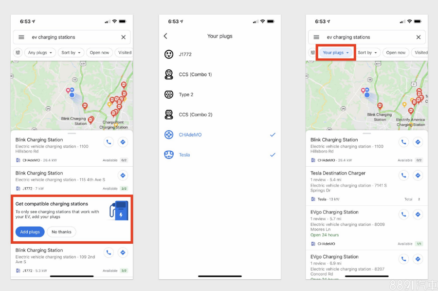 燃油車款基本上只要在地圖上搜尋加油站,去到任何一個加油地點都可以添加燃料,但對於電動車來說,即便有了充電站,其充電的規格不相容也是枉然,現在Google Maps為了將來廣大的電動車市場,在地圖當中除了可搜尋充電站之外,也增添了該站的充電樁接頭資訊,讓使用者可以快速瀏覽是否適合自己的車輛。