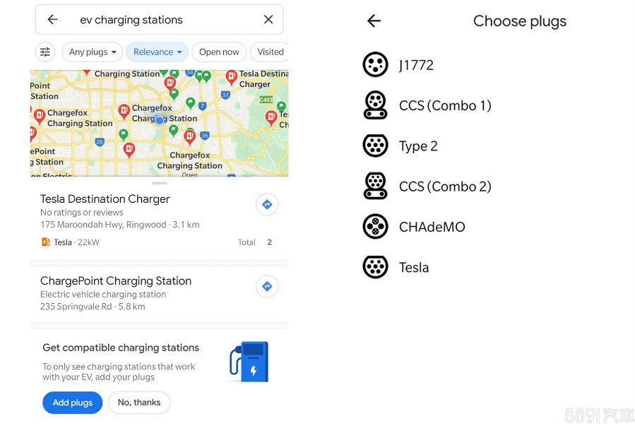 目前在美國、英國以及澳洲的Google Maps當中,只要搜尋充電站,在地圖的一旁就會出現相關的資訊,你可以搜尋特定的接頭類型,包括J1772,CCS(Combo 1),Type 2,CCS(Combo 2),CHAdeMO和Tesla,篩選完過後地圖就會直接過濾掉你不需要的充電樁,避免你一個一個點進去浪費時間搜尋。