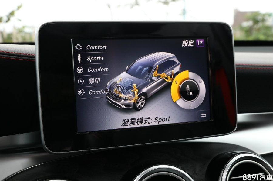 雖是高規車型,但中央資訊幕仍為尺寸較小的一般款式,升級為8.4吋大螢幕的COMAND Online系統需14.1萬元,其他等級GLC選配價則是17.6萬,另外,由於GLC 43標配氣壓懸吊,可依情況自動或手動調整車身高度,個人化模式也多了設定軟硬度的選項。