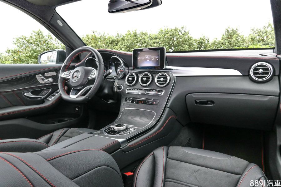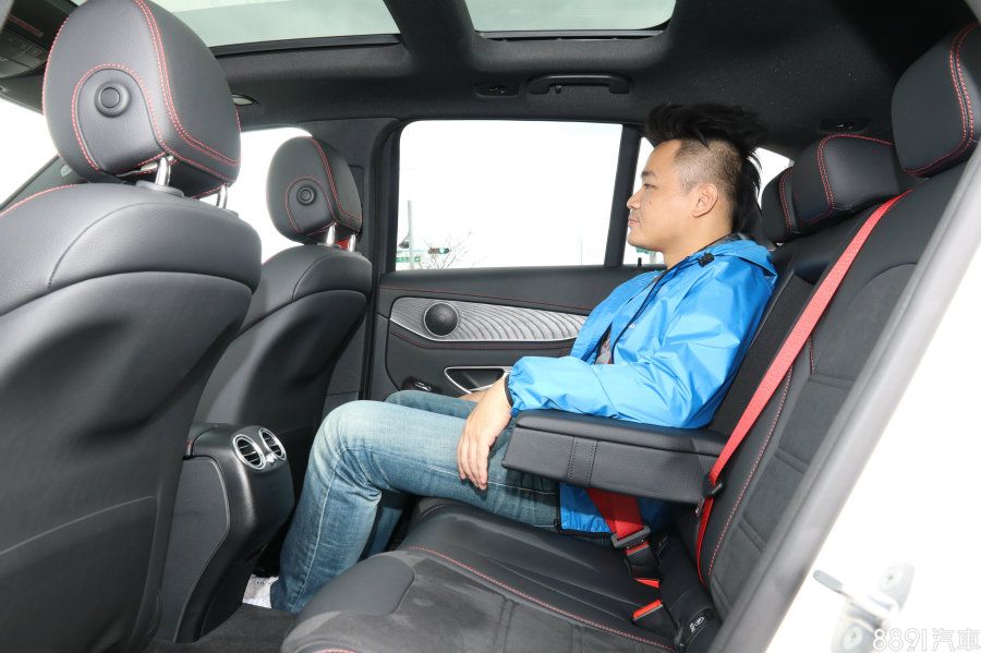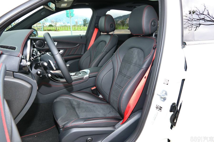 真皮與麂皮材質的前座椅舒適度佳,標配加熱功能,加上紅色車縫線與安全帶,視覺效果不差,只是因無法個別調整腰部側向包覆性,激烈駕駛時會顯得不足,此外,或許是房車及休旅定位的差異關係,GLC無法像C43、E43等車型,能選配造型、功能一流的AMG跑車椅。