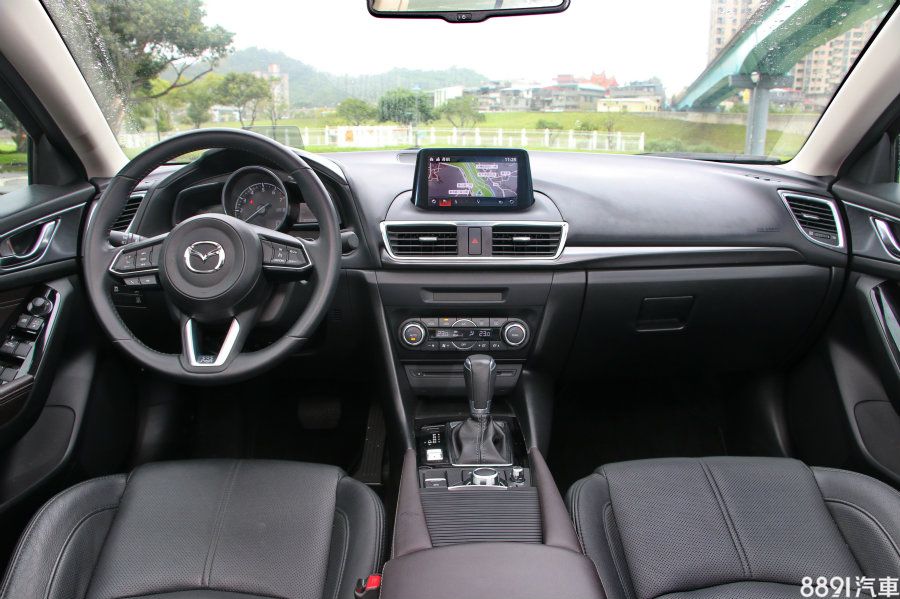 身為進口階級的Mazda 3,在內室的細節或組裝品質,有著高質感的表現,視覺與觸覺符合進口車該有的水準,至於配備同樣也不差,擁有7吋觸控螢幕、恆溫空調、Keyless等,安全配備則與Altis相當,擁有上述同樣配備,若想要更多,例如SCBS-F都會防撞輔助或MRCC智慧定速跟車,只能忍痛增加預算,那車價就突破80萬了。(此為旗艦款內裝示意圖,此款擁有電子手剎車。)