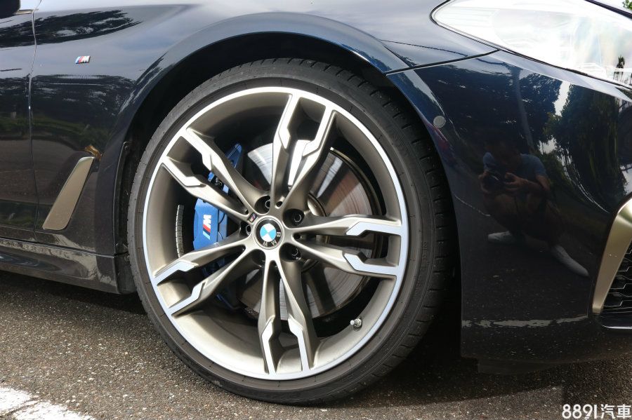 M550i標配同場最大的20吋鋁圈,氣勢與辨識度佳,搭配前245/35R20、後275/30R20的倍耐力P-Zero跑胎,內部的剎車組視覺也頗為飽滿。
