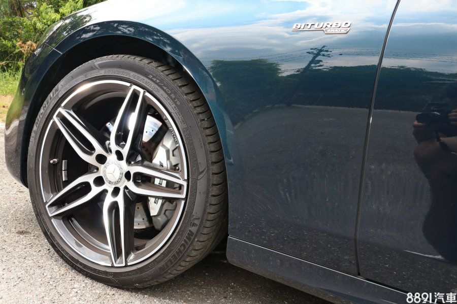 一般E-Class也可選配這款19吋鋁圈,不像M550i為專屬造型,少了些獨特性,配胎則是米其林Primacy 3,產品仍帶有舒適訴求,不過應付E43動力還行。