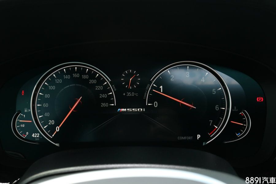 儀錶和一般5系列一樣可隨駕駛模式有三種變化,相關顯示內容與260km/h的錶底時速也沒變,差異在於中央永遠顯示的M550i字樣。