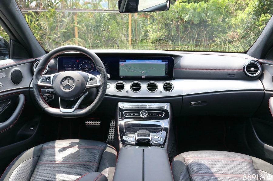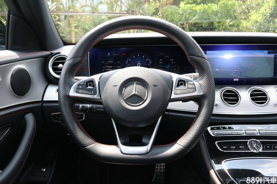 除了高階LED頭燈列為標配,鑽石型水箱罩是車頭最大特色,其他E-Class選配的AMG套件則是雙柵造型,此外,E43可選配3.3萬元的夜色套件增加神秘感,至於12.6萬元的碳纖維套件,僅後視鏡罩與鴨尾式尾翼換成碳纖維材質,C/P值不高。
