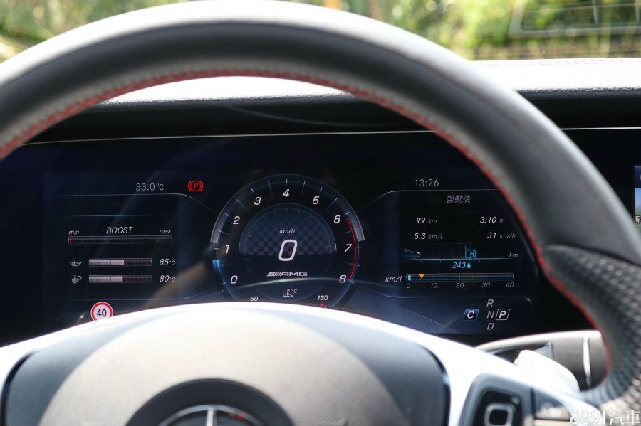 儀錶中央具AMG字樣以表身分,左側也多了一般車型缺少的顯示項目,包含增壓值、機油溫度以及G值等內容,這部份勝過M550i。