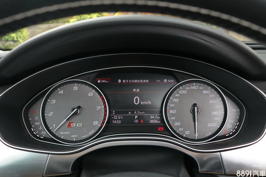 雖然並非目前Audi新世代的全數位儀錶,但中央的螢幕面積不算小,資訊豐富度還算不錯,另外在錶底速度也比照RS 6劃至320km/h,是M550i與E43所沒有的配置。