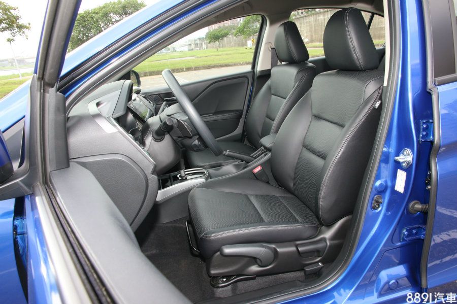 City全車系皆為皮質座椅,在椅背與坐墊處有孔洞的透氣處理,腰部的包覆性還算不錯,但大腿兩側則顯得普通,不過就發泡棉的設定上,與同級車相比算是柔軟。