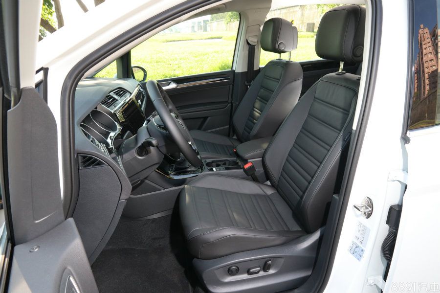 Touran略帶高度的車頂,駕駛視野頗為寬敞,三角窗設計也有助於減少視野死角,除了基礎車款,其餘皆標配真皮座椅,並有12向電動調整與前座加熱,實際乘坐上,柔軟度設定適中,支撐性不錯,包覆性則符合家用車需求,但少了椅墊長度調整是比較可惜一些。