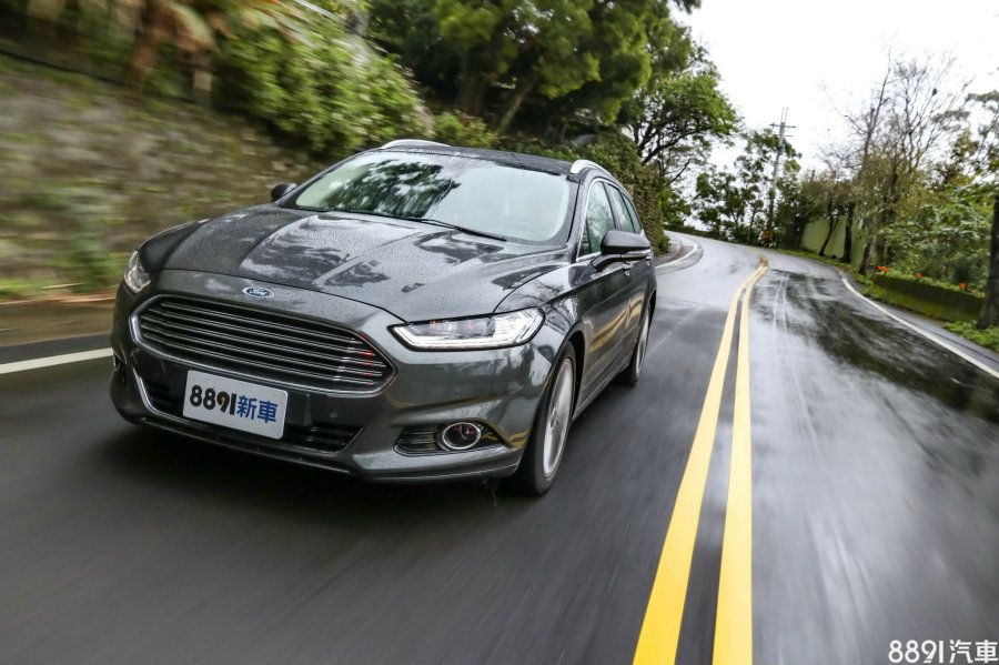 Mondeo Wagon除了車尾和頂置行李架,前半部設計幾乎與房車版如出一轍。作為野馬的效仿對象,顯眼的馬丁頭水箱護罩和銳利的LED燈組,在運動氣息中更帶點美式肌肉感。輪圈則與國內Mondeo房車版同採18吋多輻款,配胎為253/45R18的米其林Primacy 3,應付本車各項表現算是稱職。