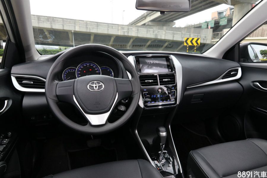 內裝鋪陳一般,不過各項功能區塊劃分清楚,視覺看起來還算簡潔、舒服,只不過還是因版本因素,像恆溫空調、多媒體螢幕、Keyless等這些配備皆無緣享有,就連定速巡航也是必須加價選配,少了這些配備加持,呈現的塑料感還比高規Vios來得重,安全配備上,入門版僅有2氣囊,動態穩定需選配,高階版才能擁有6氣囊、動態穩定、盲點偵測。