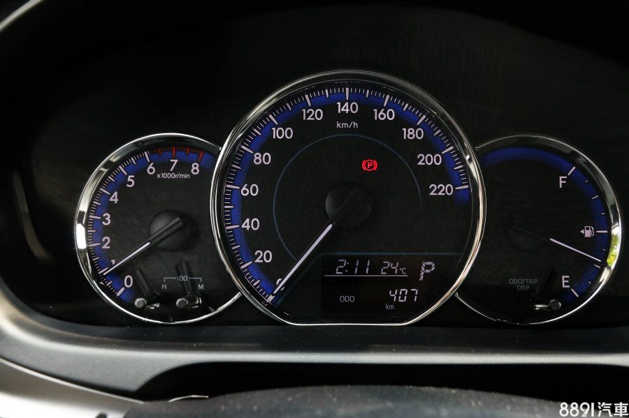 這套三環式儀錶造型款式與Altis相同,只不過等級有高低之分,高規的Vios有自發光功能,在夜間行駛,辨識度上有一定的助益,反之入門的Altis則無自發光功能。