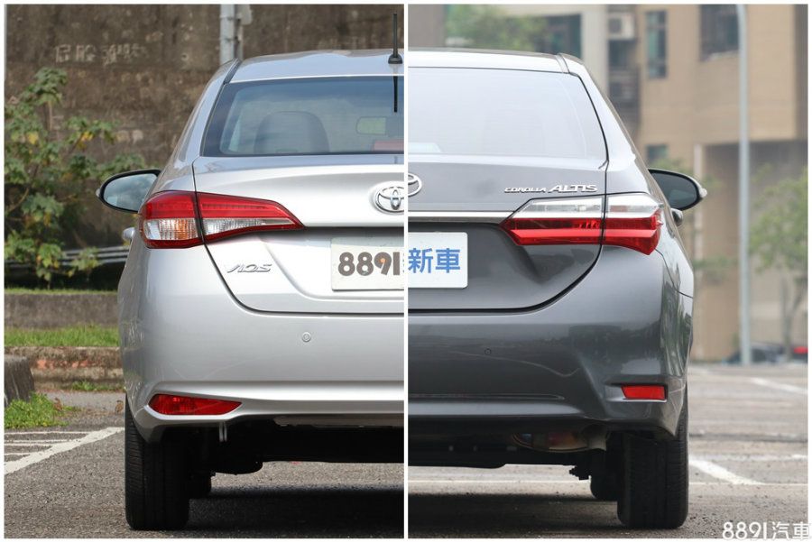 外型比起來,Altis顯得有稜有角、凹凸有致,視覺呈現的立體感,Altis的確較出色,外觀配備上,同樣採鹵素頭燈配上LED日行燈,因最入門版本因素,前霧燈、電動摺疊後視鏡等這些配備,是得後續加價選配。