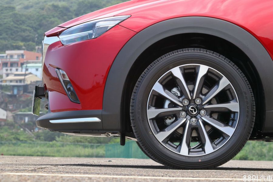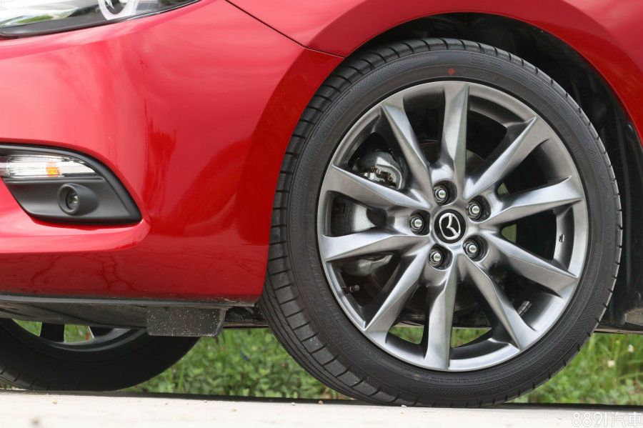 與CX-3相同,18吋鋁圈從中高階版本開始配置,旗艦版獨有槍灰色設計,215/45R18輪胎尺碼也相同,不過輪胎品牌Mazda 3則是配置Dunlop SP Sport Maxx TT,此胎較偏向運動派,抓地力雖好,但也有滾動噪音大的缺點,至於鋁圈造型來說,CX-3放射狀設計,個人覺得最好看。