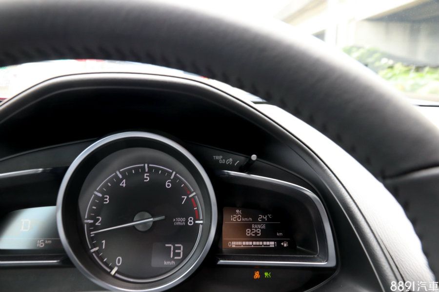 試駕的旗艦版本擁有MRCC智慧定速功能,從方向盤右側按鍵來啟動、設定,偵測到前方車輛後,儀錶右下方即會亮出綠色作動燈號,實際感受車輛對於加減速的控制,其實還有精進的空間,前方突有車輛插入時,有時減速也會慢了半拍。
