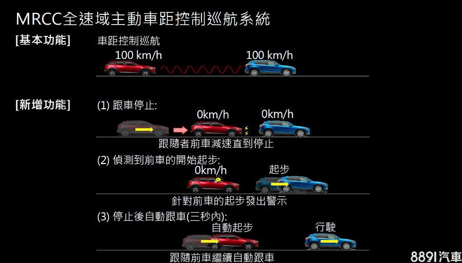 不過此系統擁有全速域功能,代表能跟車到靜止,靜止三秒內,前車開始前進,也能自動立即跟上,但超過三秒,就要自己再重新設定了,以這個級距來說,有了這項配備,在同級裡已算相當出色,且單論這項系統,CX-3在88.9萬的版本即能享有,但Mazda 3可就必須來到93.9萬的價格。