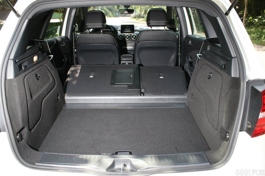 行李廂容積空間一般,一般情況下為488L、傾倒後達1547L,地形稱得上平坦,但傾倒後會有些微的高低落差,需注意,比較其他對手,B-Class是無電動尾門配置,這點也是可惜的地方。