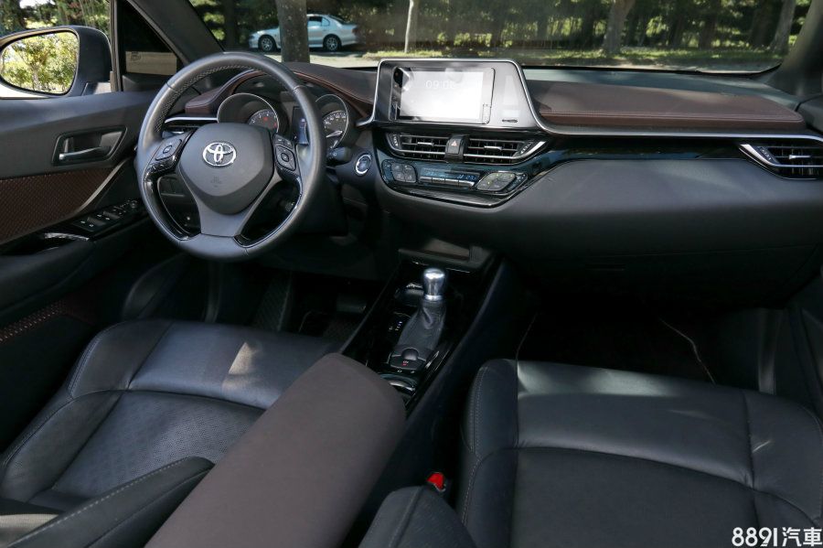 透過亮黑飾板、棕色皮革與霧銀飾條等材質堆砌,C-HR內裝用料多樣,配備調整上,為經典型增加倒車顯影、尊爵AWD也增配導航,在最入門的經典型即標配恆溫空調、7吋多媒體螢幕、感應頭燈/雨刷與7氣囊等,豪華型再增加Keyless、定速、皮椅與獨門的加熱座椅,尊爵型增加倒車雷達與USB端口。