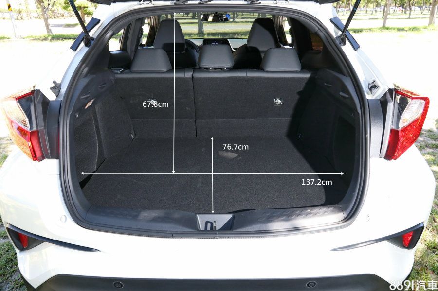 在後座膝部空間僅略遜於最大的HR-V,而頭部空間則是同場對大者,或多或少與方正的車頂線條有些關聯,不過與C-HR相同缺少後座扶手,中央底板也偏高。