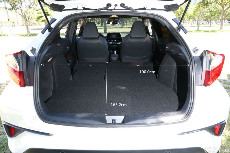 以175cm的成人男性為示範,透過雷射測距儀實測,C-HR頭部空間為8.9cm、為同場所剩幅度最小者,膝部空間12.7cm、僅勝過CX-3,而屈就造型的小面積車窗,影響後座視野開闊度,長途乘坐下易產生幽閉感。