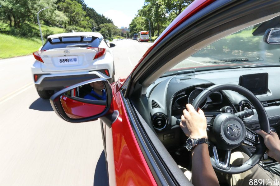 內裝上與Mazda 2頗為相近,材質的豐富程度與細節細膩度,與C-HR同為質感較佳的感受。配置上,入門款已有恆溫、Push Start、7吋多媒體螢幕、盲點、RCTA與6氣囊,中階款再增加定速、Keyless免匙系統、SCBS-F與車道偏移警示,頂規有完整的MRCC與SBS,還有獨門的HUD,配備完整度屬同場最佳。
