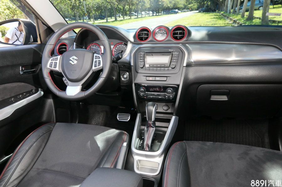 座椅材質在腰部與腿部採麂皮材質,有較好的質感呈現,算是Vitara小有贏面之處,中階款以上再增加紅色縫線修飾,呈現些運動風格,支撐性與包覆性也不賴。