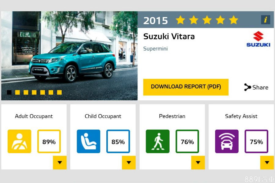 Vitara在成人與孩童的撞擊防護效果佳,在各項目幾乎都拿到最高的「Good」評價,不過在行人撞擊測試中被特別說明,大燈上方是比較容易造成傷害的位置,其餘沒太大問題,值得一提的是,在主動安全方面,受測車型配置了AEB系統,不過引進台灣的車型並未提供此項配備。