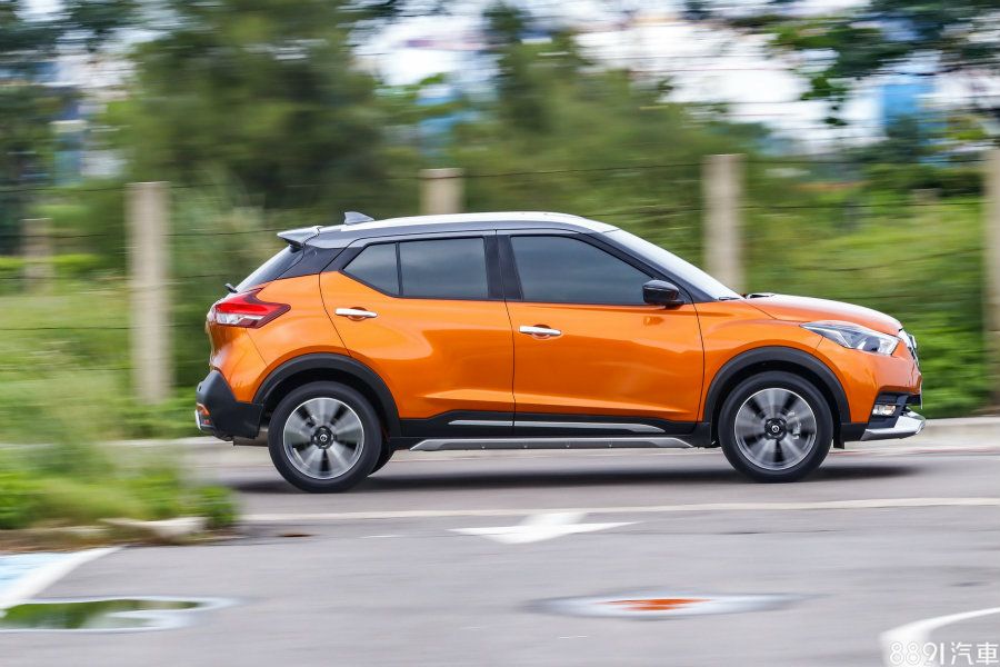 Kicks雖無HR-V隱藏式把手的類Coupe造型,而是以懸浮式車頂的方式走出自己的風格,同時C柱下斜的幅度沒HR-V來得大,對乘坐空間也有所幫助,另外像頂規標配的霧銀後護板、側裙與車頂架,都是HR-V未有標配的項目。